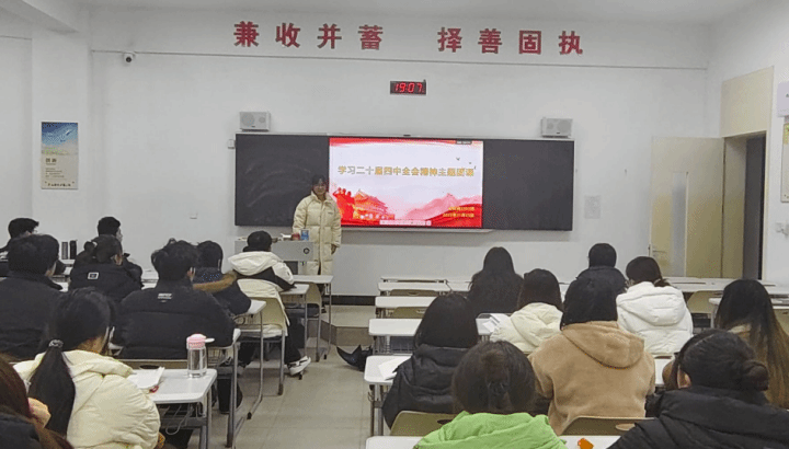 为深入学习贯彻党的二十届四中全会精神,引导青年学子将个人成长融入国家发展大局,近日,信息工程学院各班级团支部以 “线上线下融合、理论实践并重” 的方式,陆续开展 “学贯四中全会,勇担青春使命” 系列主题团课。全院千余名团员青年在热烈的思想碰撞中,深刻领会全会精神核心要义,明确 “十五五” 时期青年担当的实践路径,让新时代强国建设的思想罗盘在青春心中扎根。 各班级通过观看《学习贯彻党的二十届四中全会精神》专题视频、...