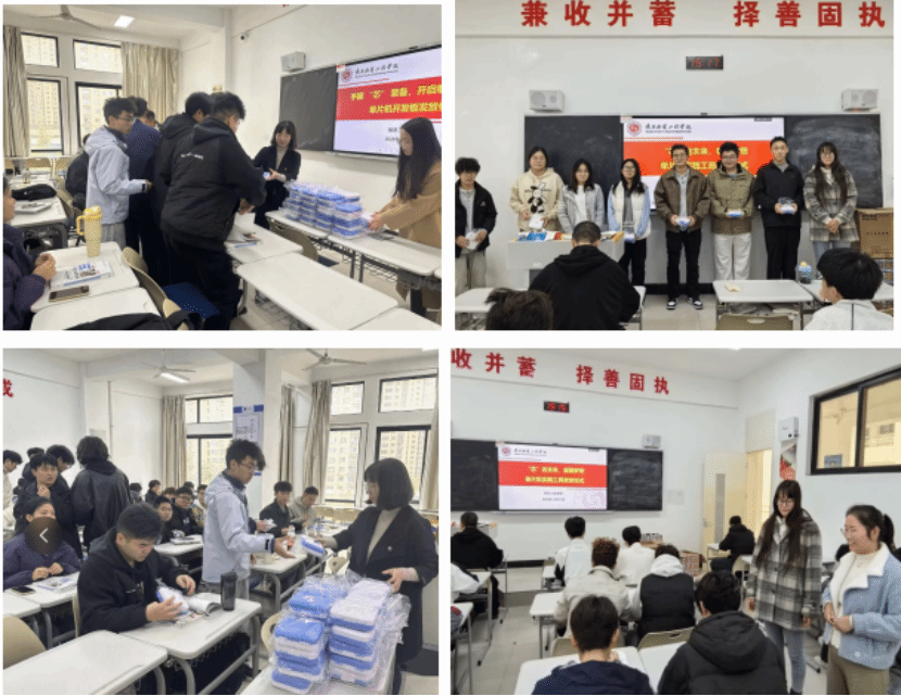 随后,各系专业教师有序为学生发放单片机实验板。拿到开发板的学生们热情高涨,纷纷表示将充分利用这一学习资源,在课余时间积极开展自主练习、参与学科竞赛,把理论知识转化为实际能力,在嵌入式、智能系统开发等领域不断学习创新,为未来职业发展积蓄力量。