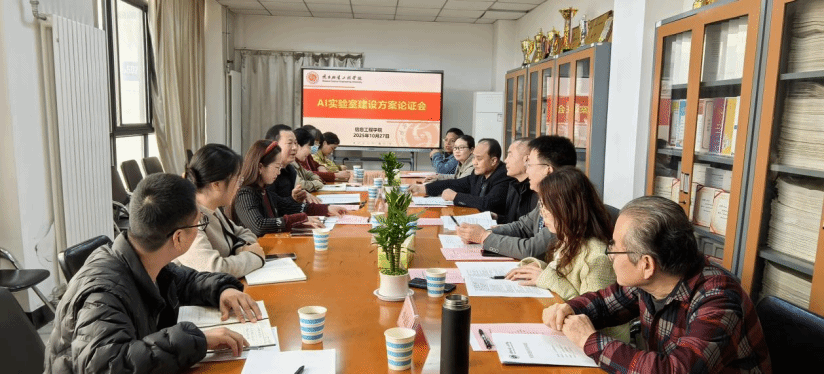 2025年10月27日下午14:00,信息工程学院在D501会议室召开AI实验室建设方案论证会。本次会议旨在汇聚专家智慧,对实验室建设方案的科学性、可行性与前瞻性进行全面论证,为学校人工智能领域人才培养、科学研究及学科发展搭建高水平创新平台。学院聘请了西安电子科技大学田小林教授、西安工业大学王辉副教授、咸阳师范学院张伟教授组成论证专家组,学校校长助理翟岁兵、教务处副处长刘学艺、教务处实践科科长韩涛以及学院院长李水泉、副院长党小娟、副院长付向艳、各系主任及实验室主任出席会议。