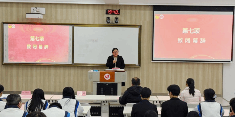 学院团委书记崔燕致闭幕辞。她代表学院团委对向全体代表及关心支持学生工作的师生员工致以衷心感谢与崇高敬意,指出本次大会凝聚了全院青年的智慧与力量,为师生搭建了思想交流、凝聚共识的坚实平台。寄语全体学生代表牢记青年使命与时代寄托,以青春之姿投身学业科研与校园建设,在实践中锤炼本领,为学院高质量发展注入源源不断的青春动能,不负时代与韶华。