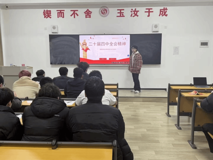 各班级通过观看《学习贯彻党的二十届四中全会精神》专题视频、研读全会公报原文、分享《团结奋斗启示新程》等权威文章,系统把握 “十五五” 时期作为 “基本实现社会主义现代化夯实基础、全面发力的关键时期” 的战略定位,深刻理解 “高质量发展”、“科技自立自强”、“共同富裕” 等核心部署的时代内涵。