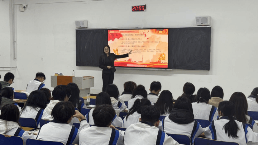 随后,学院宣讲团成员秦佳玲同学聚焦二十届四中全会精神进行宣讲。她带领大家一起回顾“十四五”时期我国在科技攻关、民生改善、生态保护等领域取得的辉煌成就,深刻剖析“十五五”时期面临的战略机遇与风险挑战,精准解读全会提出的指导方针、目标体系及重点战略任务。