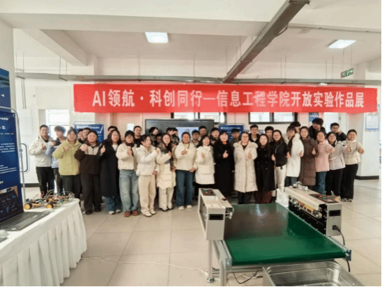 2025年12月11日,信息工程学院在教学楼CD区隆重举办信息工程学院开放实验作品展,活动历时两天。作品展以“AI领航·科创同行”为主题,旨在进一步激发学生创新思维和实践能力,营造浓厚的学术探索氛围,充分体现AI的科技魅力,展示信工学院的实践教学成果与信工学子自强不息、积极探索科学、追求卓越的精神风采。