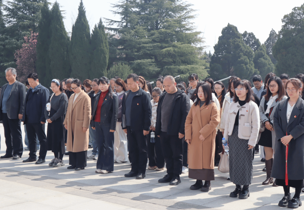 随后,党员们前往烈士林园,在成扇形布置的烈士墓区前驻足瞻仰,认真聆听烈士们的英勇事迹,深切感悟3000多名解放军指战员在扶眉战役中用生命诠释的家国情怀。其所展现的不怕牺牲、英勇斗争、团结协作的革命精神,值得每一位教育工作者永远铭记与传承。