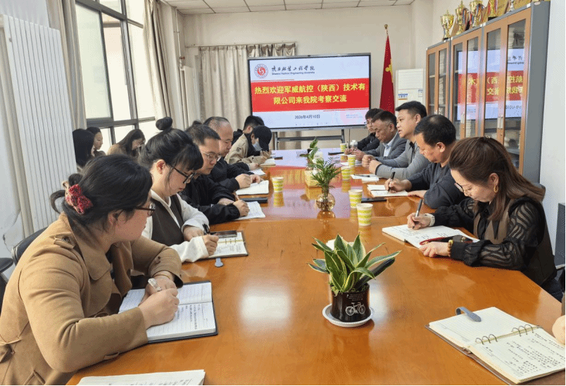 2026年4月10日上午,军威航控(陕西)技术有限公司一行莅临我院考察交流,学院院长党委书记李水泉、副院长党小娟、党委副书记罗雄及教师代表热情接待,双方围绕校企协同育人、产学研融合等议题开展深入座谈。