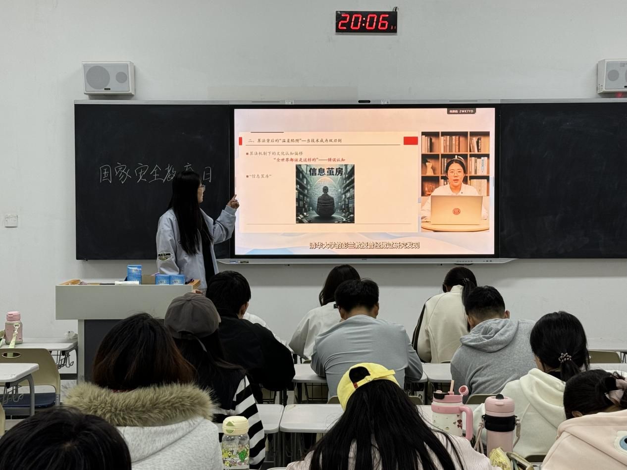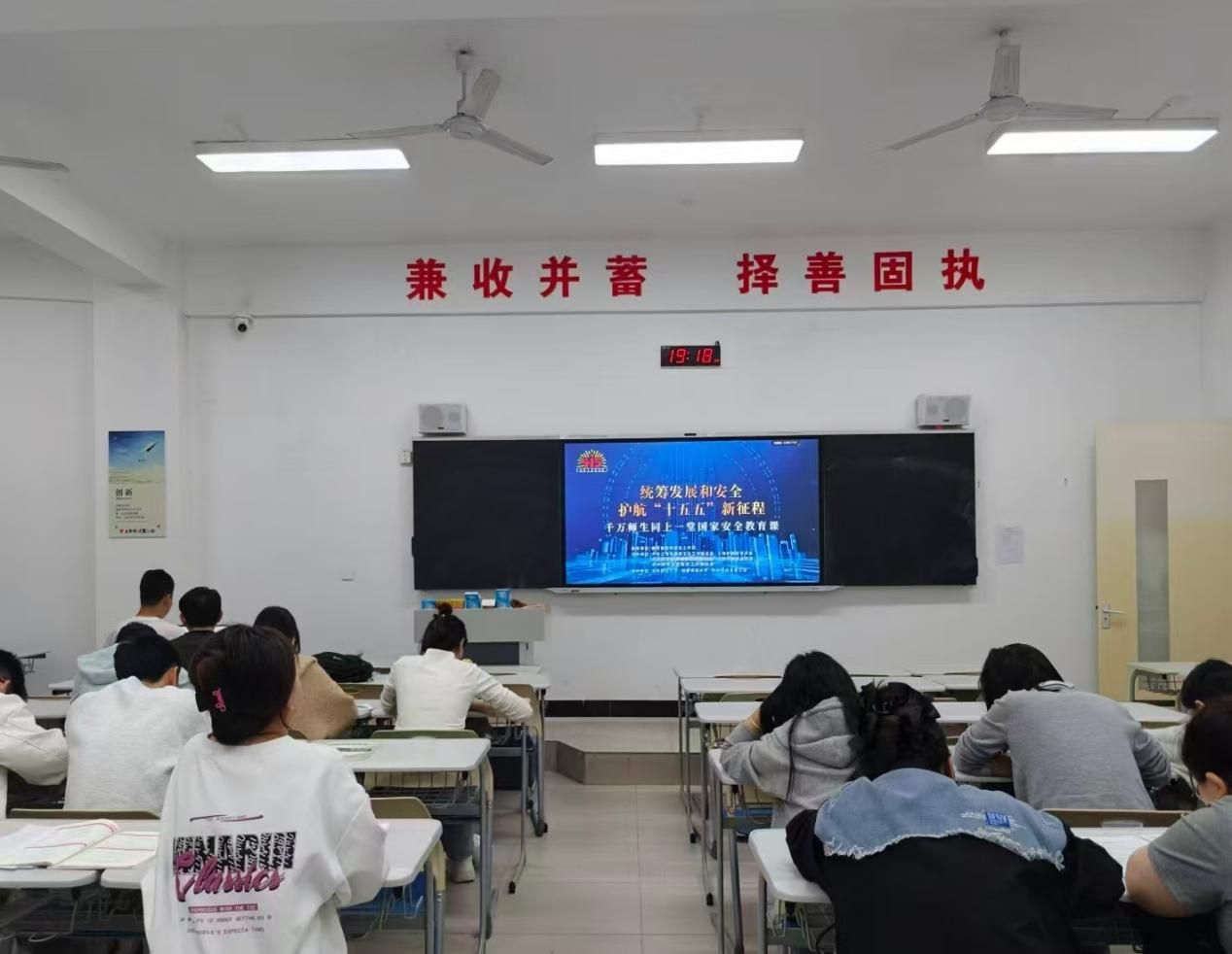2026年全民国家安全教育日期间,信息工程学院高度重视、迅速部署,围绕“树牢总体国家安全观,共筑校园安全防线”主题,明确学工办、各系及辅导员职责分工,4月15日晚自习,学院以班级为单位,全院学生统一观看“千万师生同上一堂国家安全教育课”,系统学习国家安全相关知识、法律法规和避险常识。