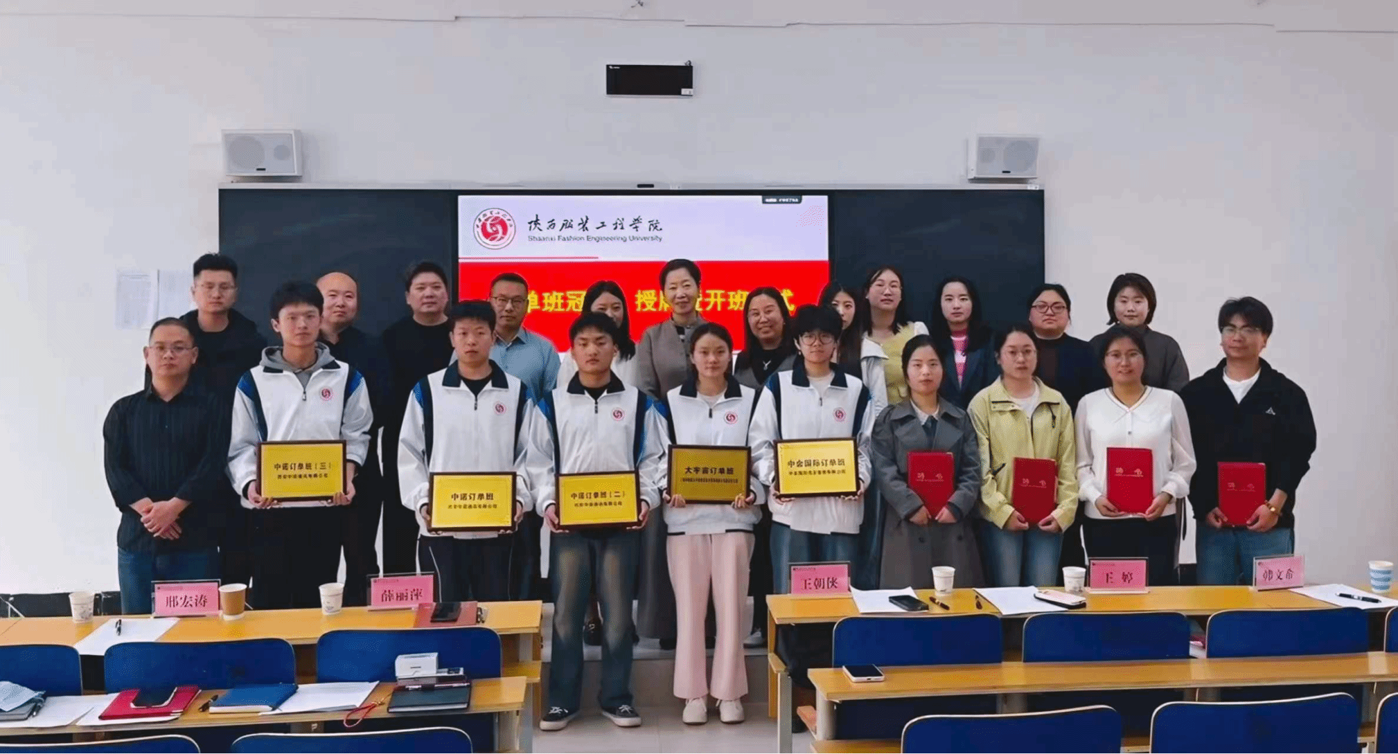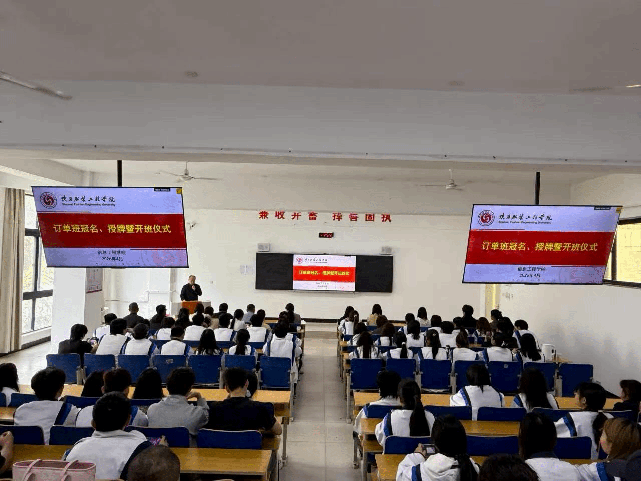 为深入推进产教融合、校企协同育人,精准对接数字经济领域人才需求,4月14日下午,陕西服装工程学院信息工程学院订单班冠名、授牌暨开班仪式在B410教室隆重举行。学校招生办公室主任薛丽萍、信息工程学院全体领导班子、各系主任、教师代表、辅导员,以及中诺通讯、大宇宙、中金国际三家合作企业代表出席仪式,仪式由学院党委副书记罗雄主持。