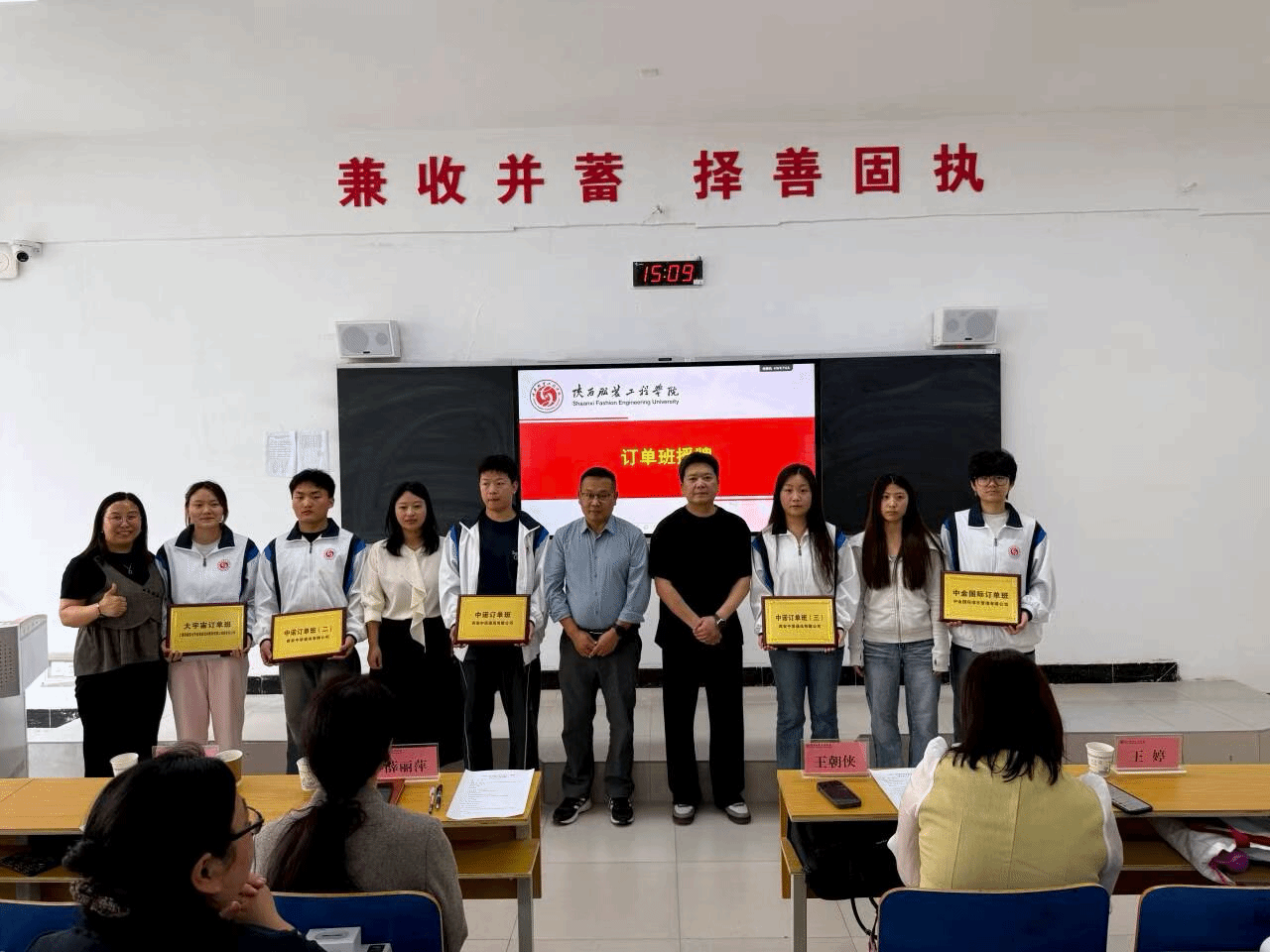 授牌环节,学院领导为中诺通讯、大宇宙、中金国际三家企业订单班正式授牌,并为订单班班主任颁发聘书,明确育人职责与管理要求。现场宣读了订单班学生名单,班主任详细解读了订单班专属课程体系、实训实践安排与培养目标,为学生规划了清晰的成长路径。