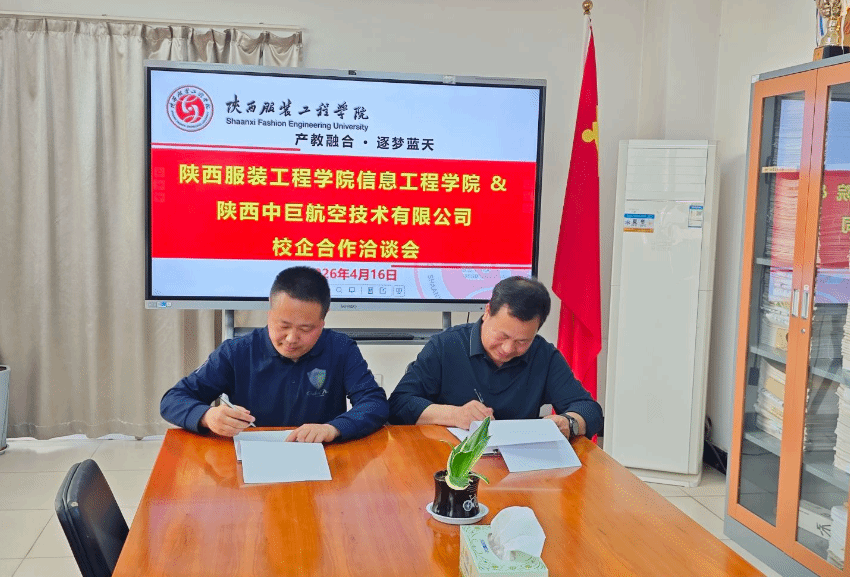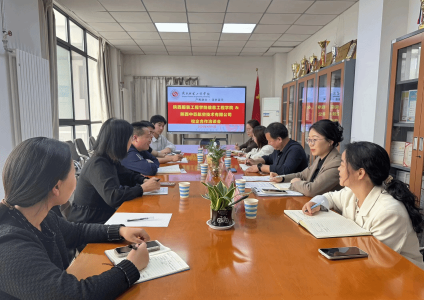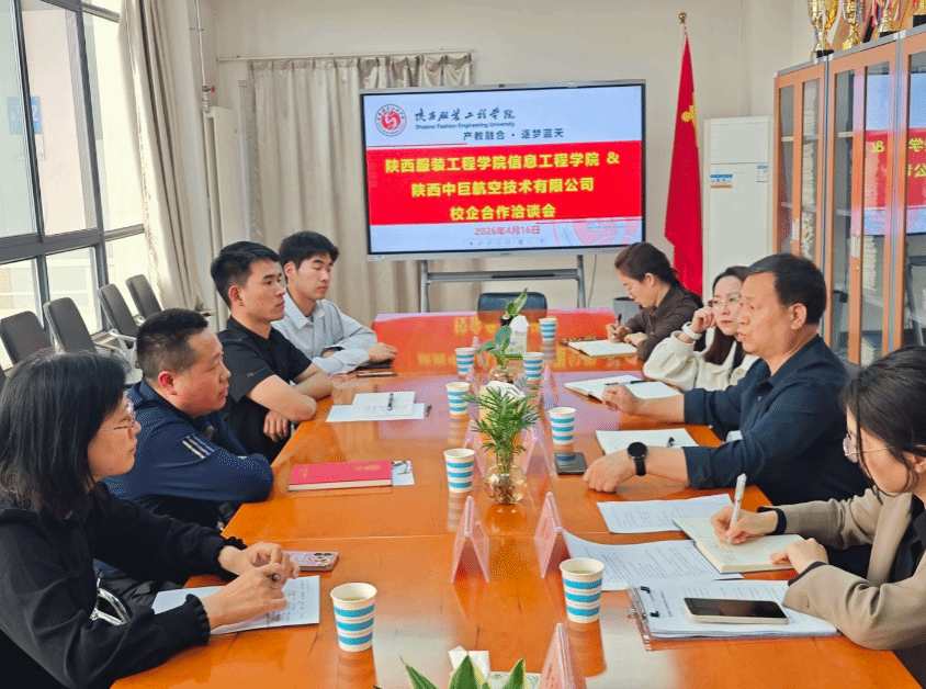 为深化产教融合、促进校企协同育人,精准对接行业人才需求,4月16日下午,信息工程学院与陕西中巨航空技术有限公司举行了校企合作洽谈会。会议由电子信息系系主任主持,学院院长李水泉、教学副院长党小娟、数据科学系系主任樊飞转等人与陕西中巨航空技术有限公司总经理董军辉、企业骨干王溪鹿等出席会议。