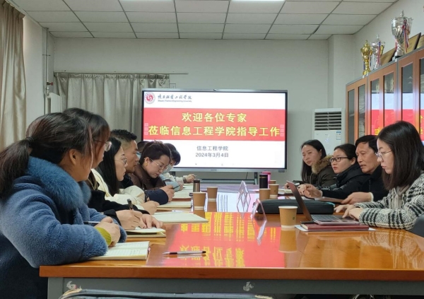 2024年3月4日上午,专家潘庆才教授在教学质量评估处刘学艺、教务处刘妍及国学院张玮老师的陪同下,莅临信息工程学院调研指导工作。信息工程学院党委书记、副院长常利群,副院长党小娟,办公室主任马杨林,教学秘书侯曼曼,各系主任、实验室主任和教师代表参加了会议。